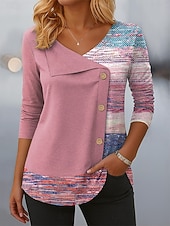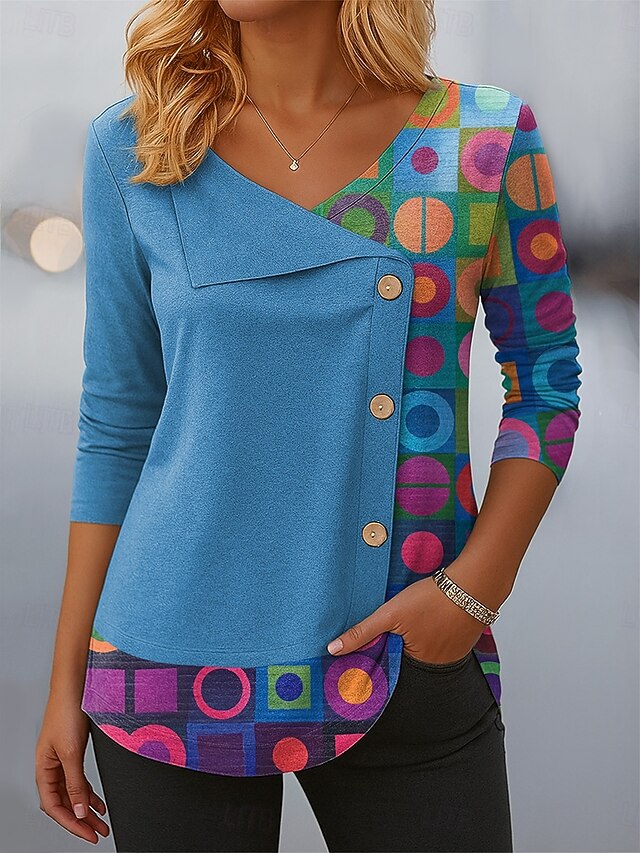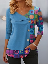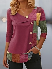 More information about Women's Blouse Tunic V Neck Long Sleeve Buttons Graphic Geometric Stylish Modern Casual Regular Tops Daily Patchwork Print Black Pink Red Blue Spring Fall Winter