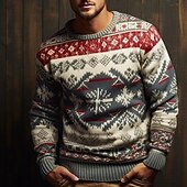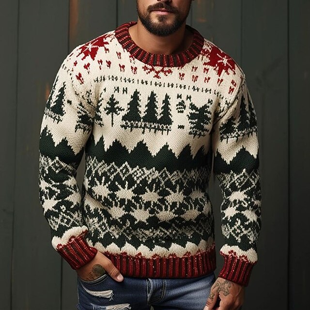 More information about Christmas Tree Geometry Casual Men's Print Knitting Pullover Sweater Jumper Knitwear Outdoor Daily Vacation Long Sleeve Crewneck Sweaters Wine White Dark Navy Fall Winter S M L Sweaters