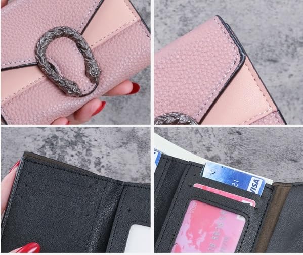 Women's Wallet Short Leather Bag Patchwork Wallet Small Trifold Clutch Multi-Card Holder(D)