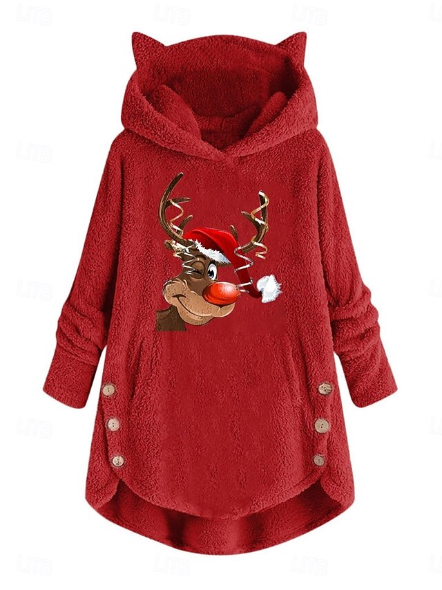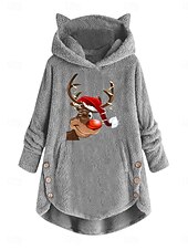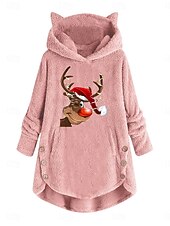 More information about Women's Pullover Hoodie Sweatshirt Reindeer Casual Long Sleeve Hooded Crop Tops Street Dailywear Casual Pocket Print Pink Wine Gray Fall Winter