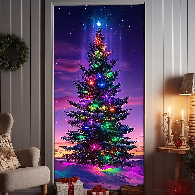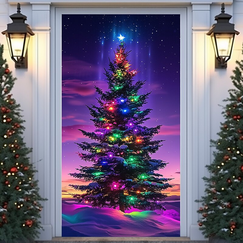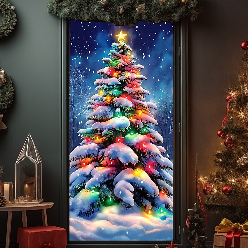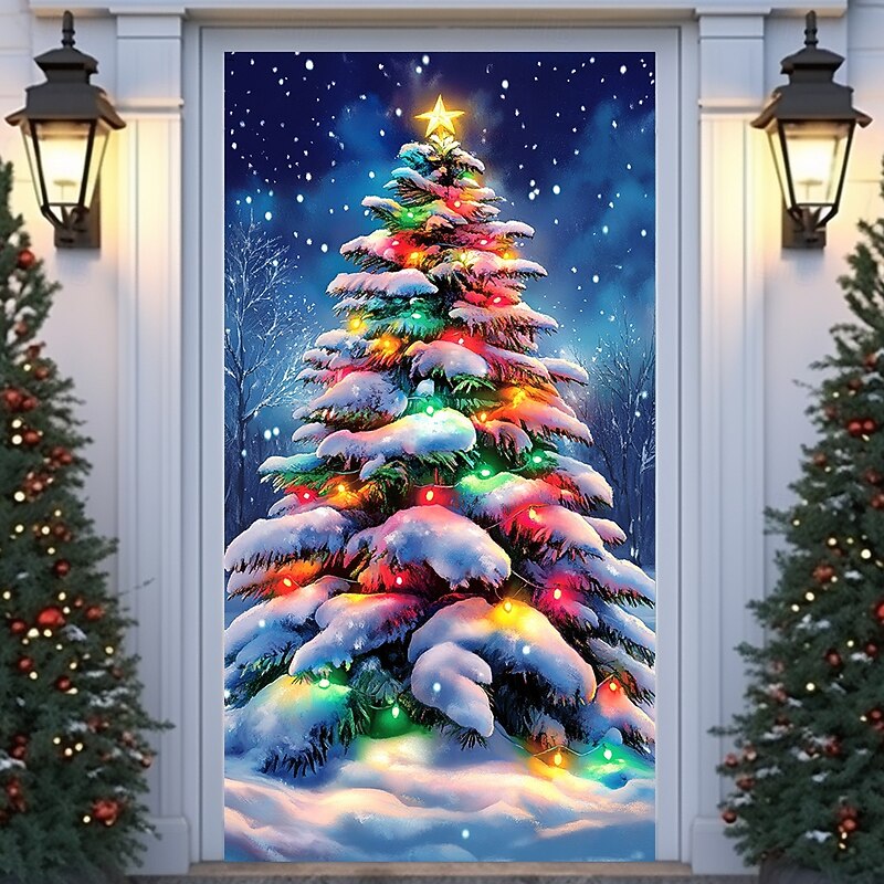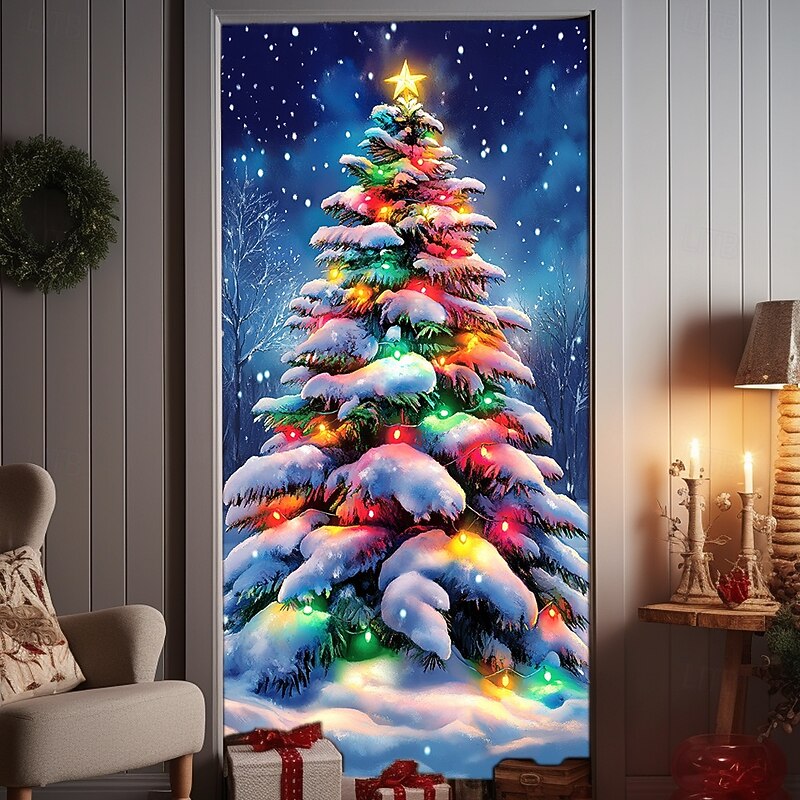 trending ! Christmas Door Decorations Door Covers Xmas Tree Door Tapestry Door Curtain Decoration Backdrop Indoor/Outdoor Door Banner for Front Door Farmhouse Christmas Tree Lights