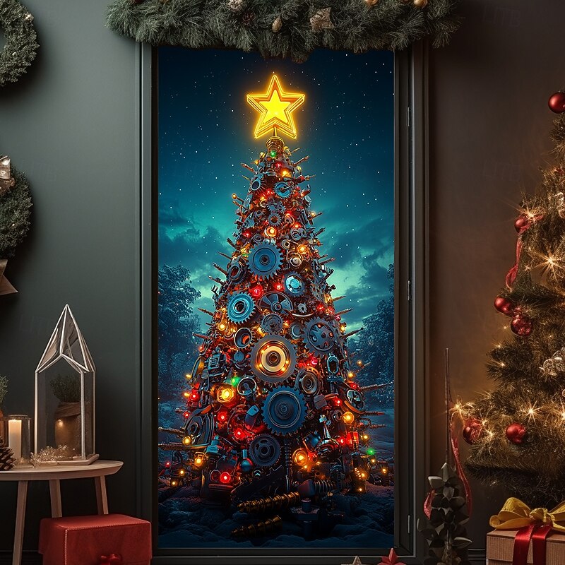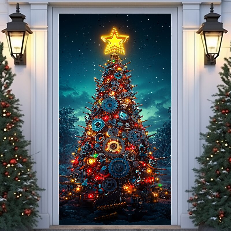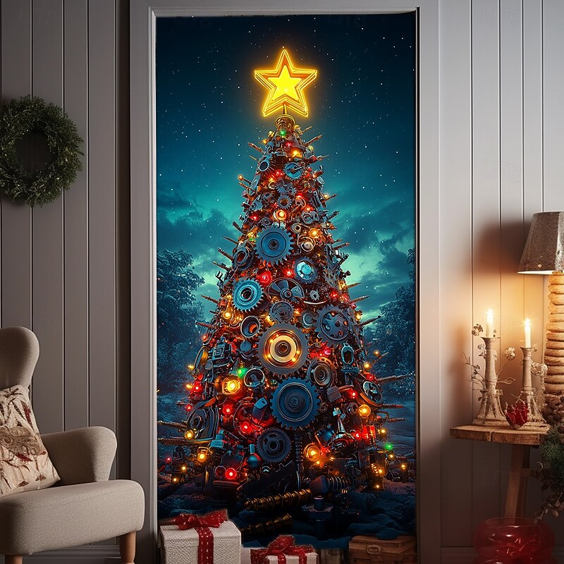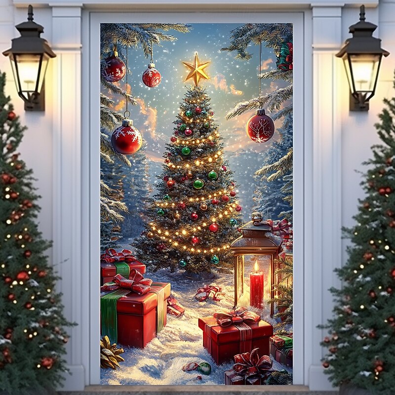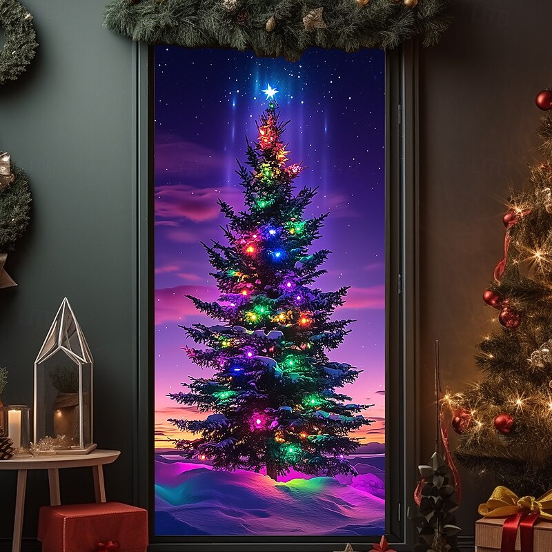 trending ! Christmas Door Decorations Door Covers Xmas Tree Door Tapestry Door Curtain Decoration Backdrop Indoor/Outdoor Door Banner for Front Door Farmhouse Christmas Tree Lights