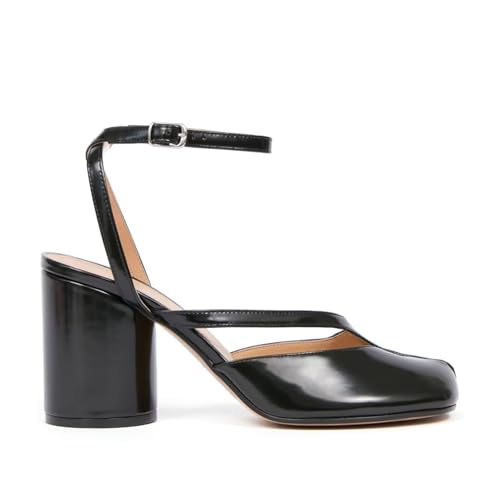 Agodor Women's Chunky Block High Heels Split Toe Pumps Ankle Strap Slingback Heels Tabi Shoes Comfort Dress Heeled Sandals Black US11 5