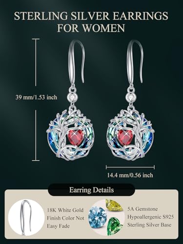 TOUPOP Tree of Life Birthstone Earrings for Women 925 Sterling Silver Family Tree Dangle Earrings Austrian Crystal Jewelry Birthday Christmas Gifts for Her Girlfriend Wife Mom 5