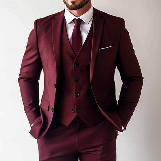 $122.99 - Men's Business Suits Notch Lapel Burgundy Formal WorkWear Solid Colored Standard Fit 3 Piece Single Breasted Two-buttons 2025. Shop for cheap Formal Suits online? Buy at lightinthebox.com on sale today!