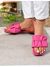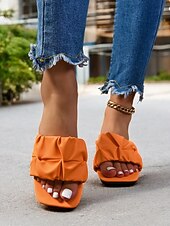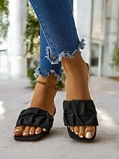 More information about Women's Square-Toe Slip-On Sandals with Ruffled Faux Leather Straps, Minimalist Casual Style for Summer Outfits and Everyday Wear
