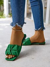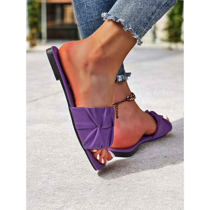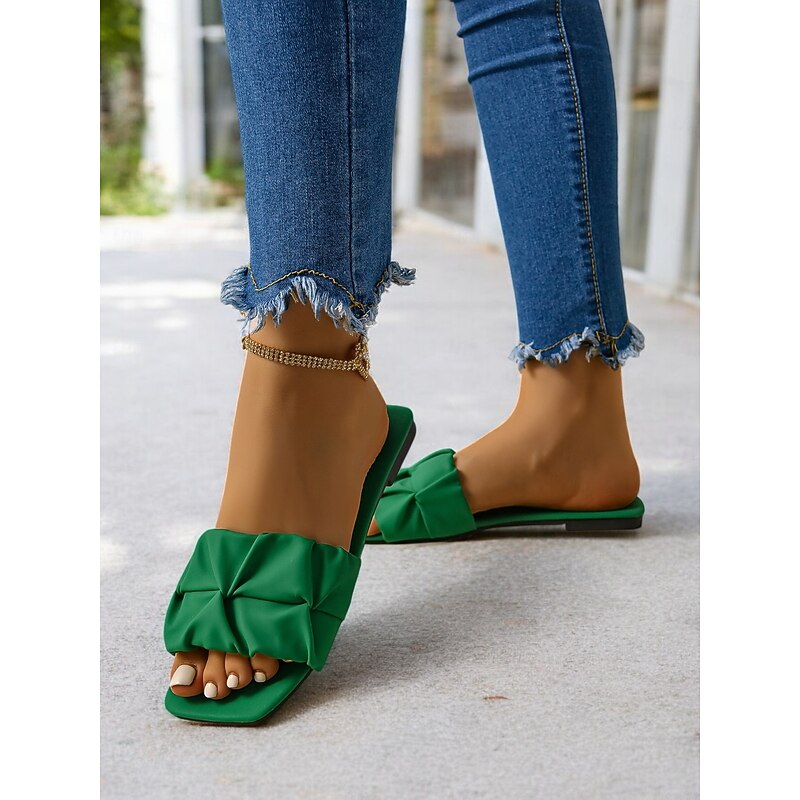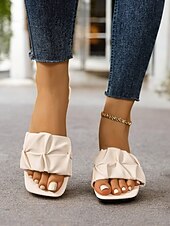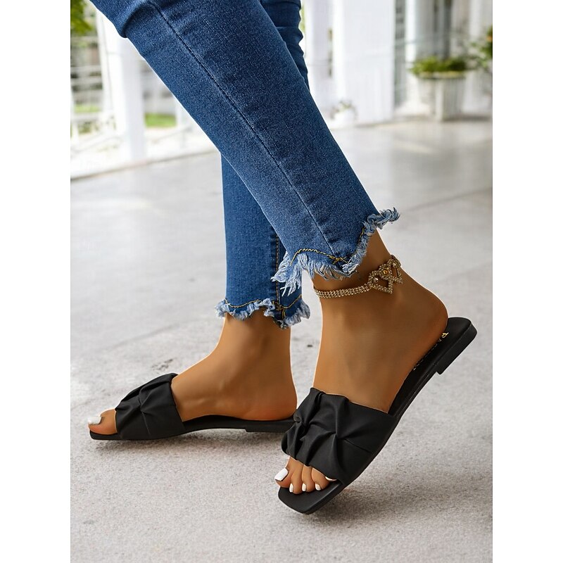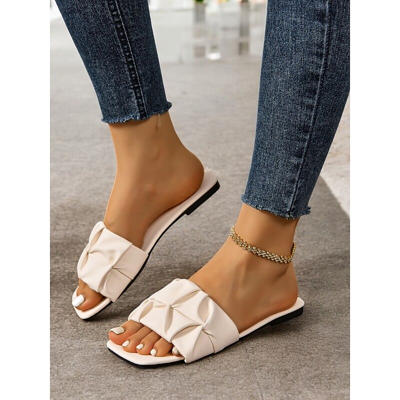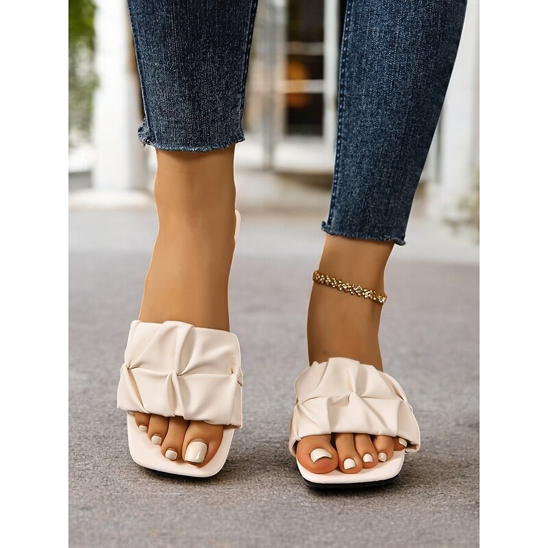 HOT ! Women's Square-Toe Slip-On Sandals with Ruffled Faux Leather Straps, Minimalist Casual Style for Summer Outfits and Everyday Wear