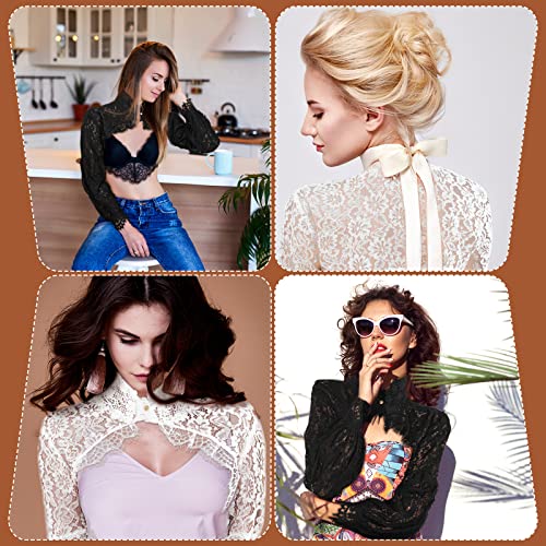 More information about 2 Pack Fake Collar Detachable Dickey Blouse Sun Protection Lace Half Shirt Blouse Flower Embroidery False Collar Long Lantern Sleeve Crop Top for Women Ladies Girls Favors