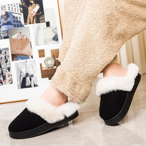 HOT ! Women's Fuzzy House Slippers Comfy Memory Foam Bedroom Slippers Warm Knit Fluffy Plush Slip-on House Shoes Indoor Outdoor(B777Black11-12
