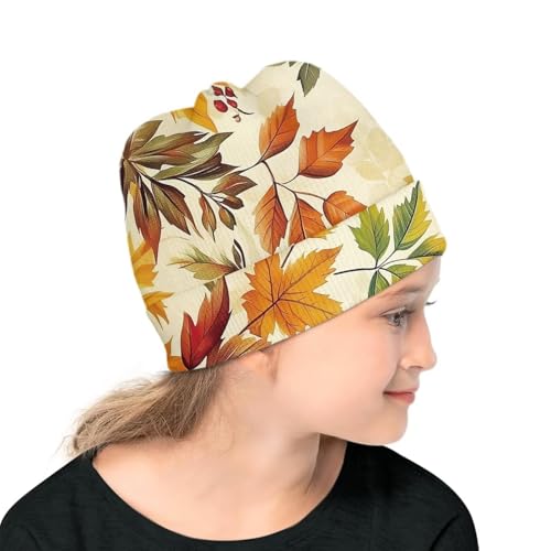 Babrukda Maple Leaves Beanie for Girls Kids Beanies Caps Soft Knit Winter Hats Roll-up Edge Stretch Caps for Cold Weather 7