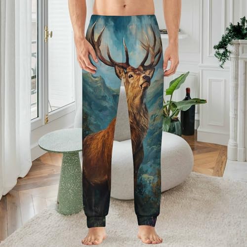 HOT ! Deers Stands in Wilderness Men's Pajama Pants Lounge Pant Sleepwear PJ Bottoms