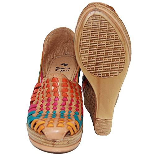 Western Shops Womens Leather Mexican Huarache Sandal, Womens Huarache Leather Wedge Sandal 5