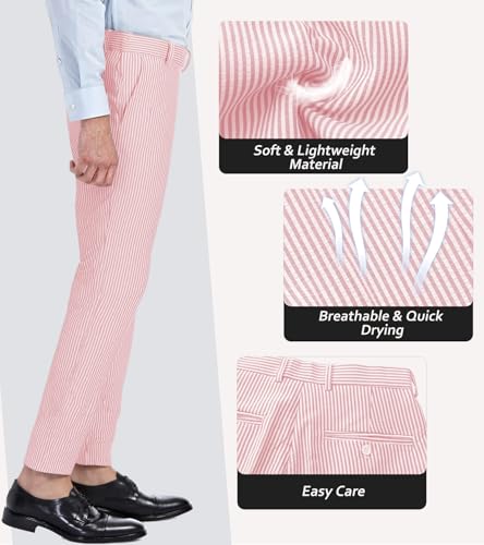 • Adaptable for Any Occasion: These seersucker pants seamlessly transition across settings. Wear them with a dress shirt for formal events like weddings, balls, or corporate meetings, or pair them with a casual tee for daily work, social gatherings, or weekend outings. Their versatile design makes them a staple in any wardrobe, ensuring appropriate and stylish dressing from morning to night