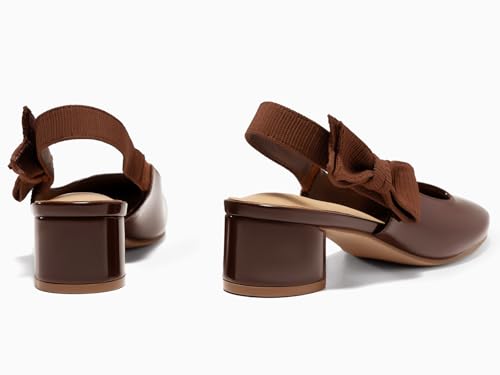 Coutgo Women's Low Block Heels Slingback Bow Closed Square Toe Slip On Work Pumps Dress Shoes 5