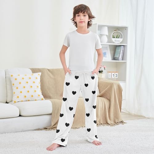 Boys' Pants Black Heart Polka Dots White Long Bottoms Jogger Pants Elastic Waist Trousers with Pockets S-XL 4