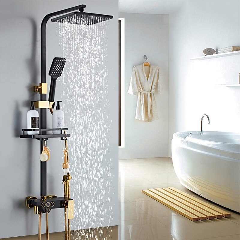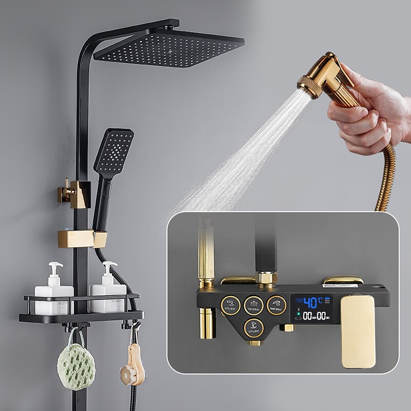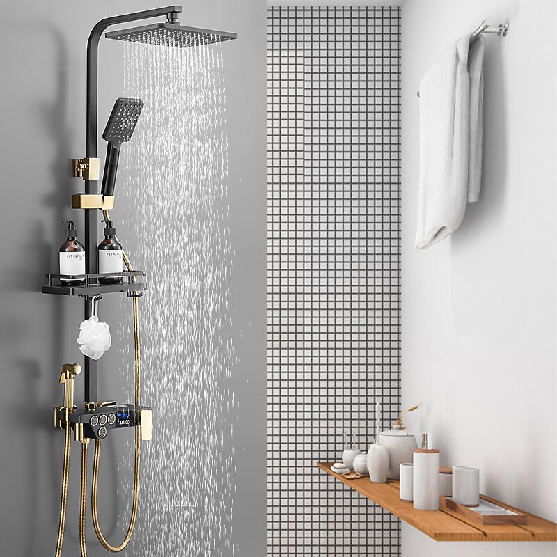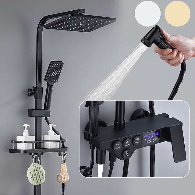 More information about Shower Faucet / Shower System / Rainfall Shower Head System Set - Handshower Included LED Rainfall Shower Contemporary Electroplated / Painted Finishes Mount Outside Ceramic Valve Bath Shower Mixer