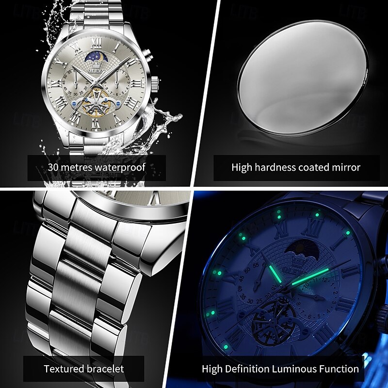 OLEVS 3640 Mens Watch Simple Original Brand Multifunctional Chronograph Moon Phase Quartz Watch Waterproof Watch 4