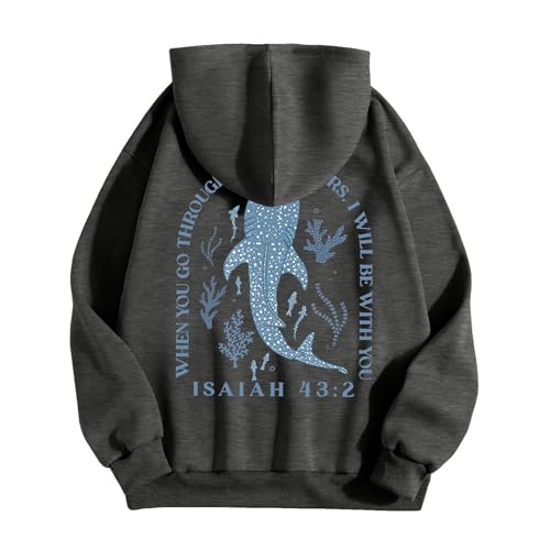 • Feature: Oversize hoodie with shark graphic and Christian “Isaiah 43:2” print. Ocean - themed, ideal for men’s casual and faith - inspired wear