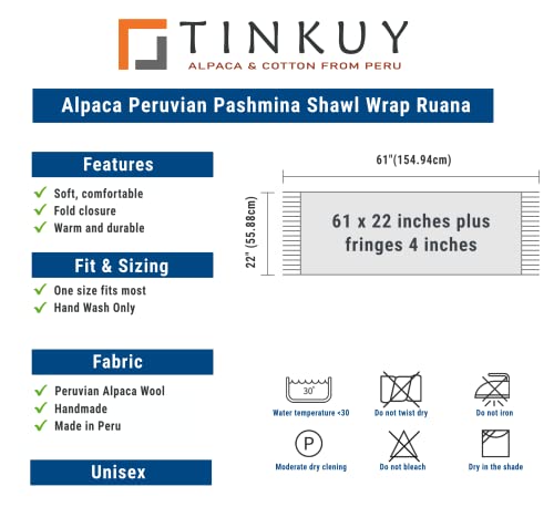 TINKUY PERU Alpaca Wool Shawl Wrap – Handwoven Peruvian Pashmina Ruana – 61"x22" – Lightweight, supple & thermal
