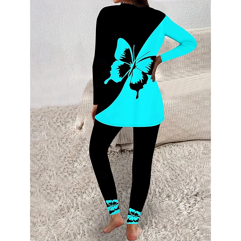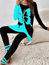 More information about Women's Elegant Vacation Fashion T Shirt Pants Sets Long Sleeve Crew Neck Round Neck Graphic Butterfly Print Casual Daily Casual Daily White Blue Spring Regular Fit