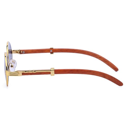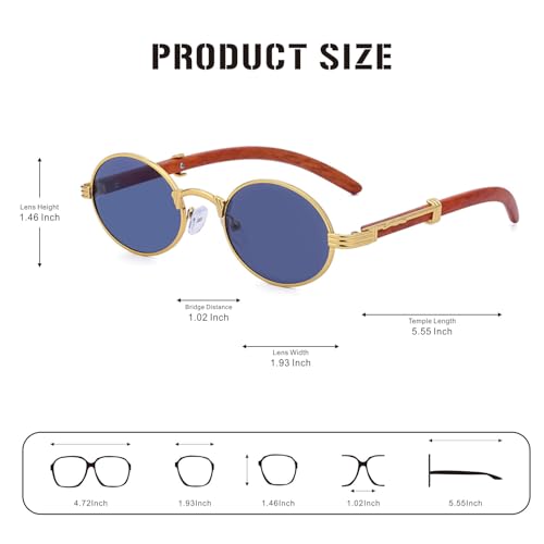 • METAL OVAL SUNGLASSES - The design of faux wood legs adds some highlights to the sunglasses. The Frame is made of high quality metal material.