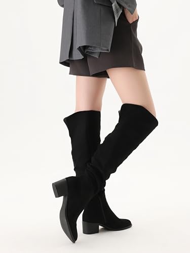 Shoe'N Tale Women's Over The Knee Thigh High Boots Chunky Block Heel Pointed Toe Slouchy Side Zipper Fall Weather Winter Boots 4