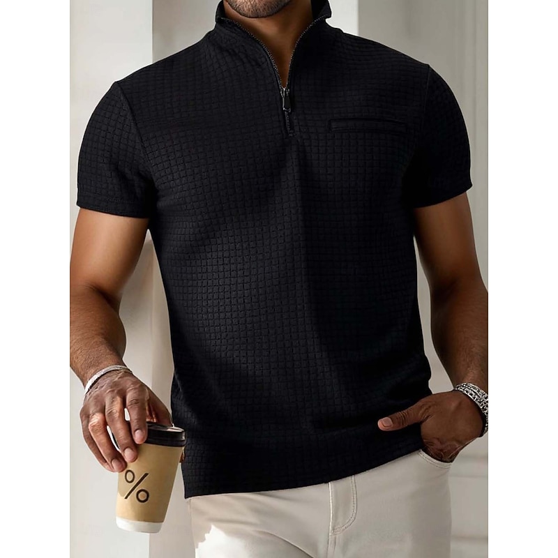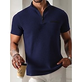 More information about Men's Waffle Polo Shirts Zip Polo Casual Holiday Quarter Zip Short Sleeve Fashion Basic Plain Quarter Zip Summer Spring All Seasons Slim Fit Black White Navy Blue Orange Waffle Polo Shirts