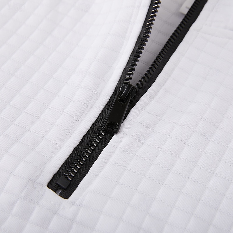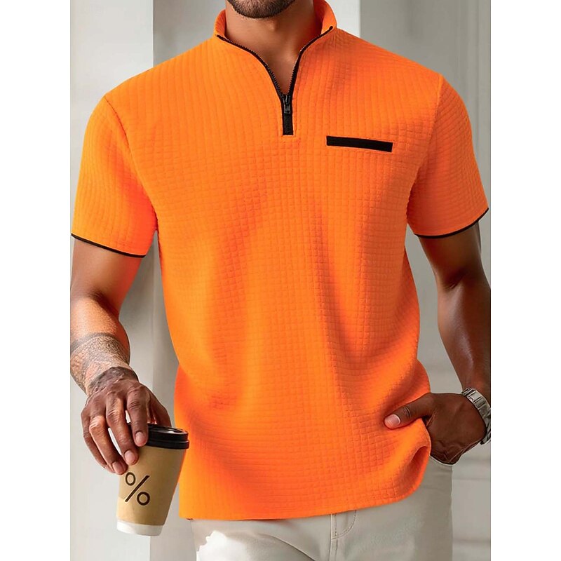 Men's Waffle Polo Shirts Zip Polo Casual Holiday Quarter Zip Short Sleeve Fashion Basic Plain Quarter Zip Summer Spring All Seasons Slim Fit Black White Navy Blue Orange Waffle Polo Shirts 5