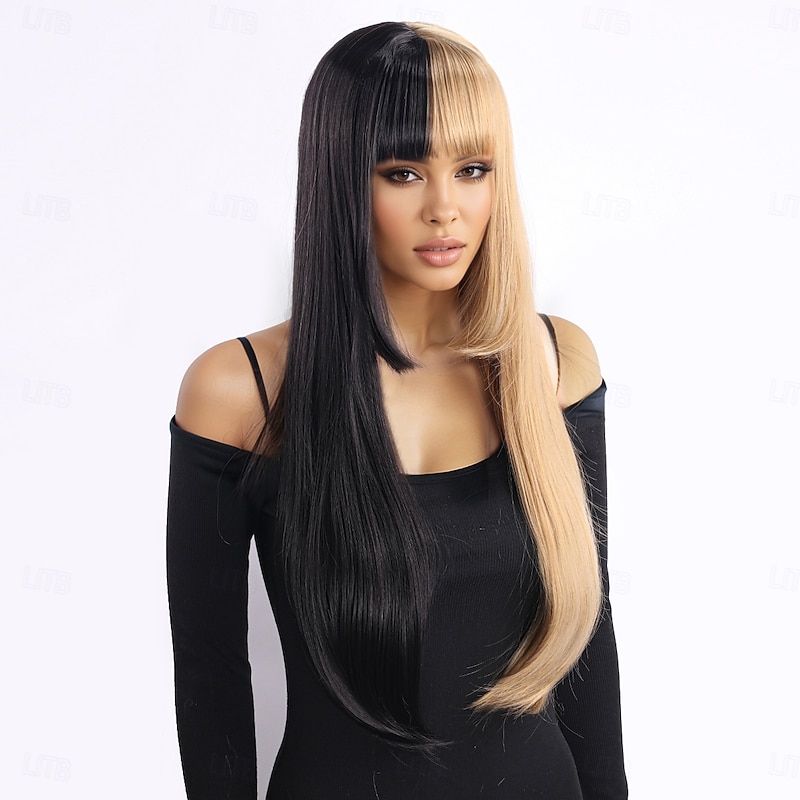 $23.99 - Synthetic Wig kinky Straight Natural Straight Layered Haircut With Bangs Machine Made Wig 28 inch A1 Synthetic Hair Women's Classic Comfortable Color Gradient Multi-color 2025. Shop for cheap Synthetic Trendy Wigs online? Buy at lightinthebox.com on sale today!