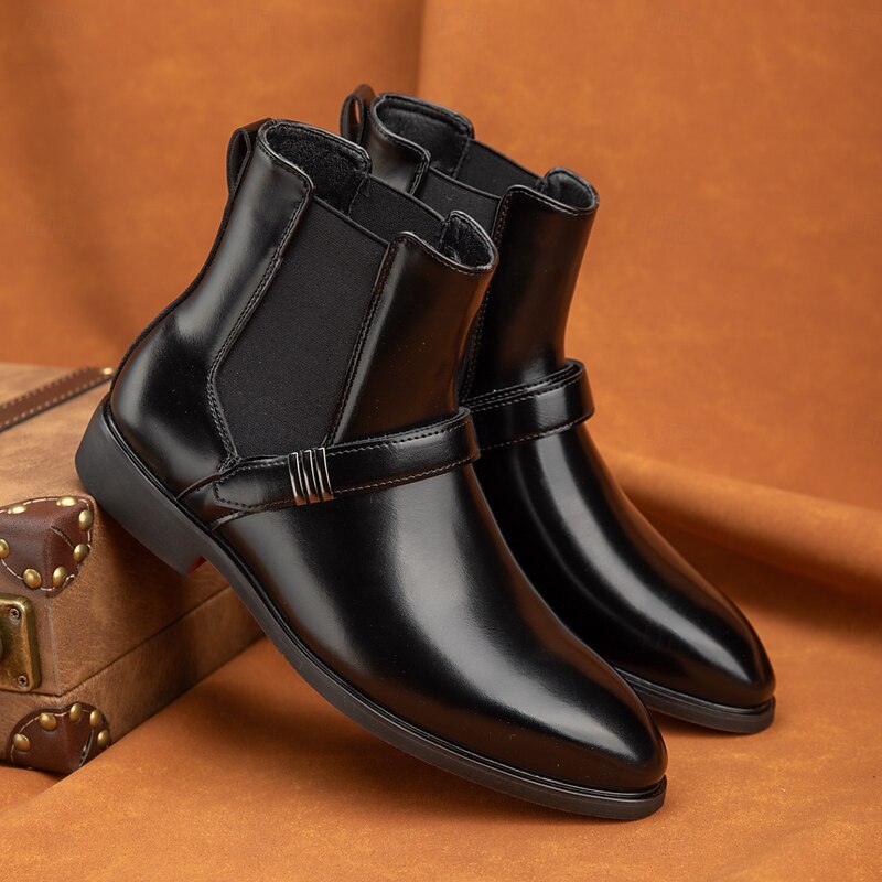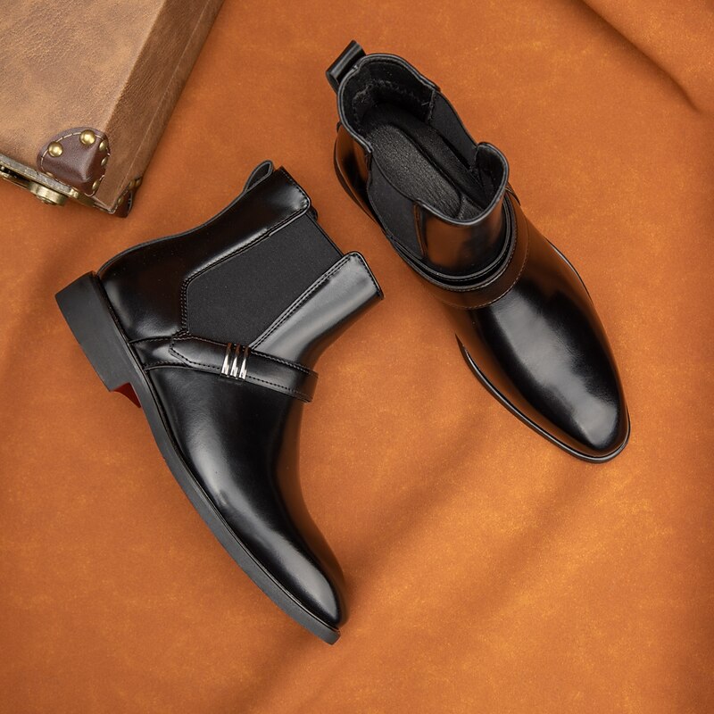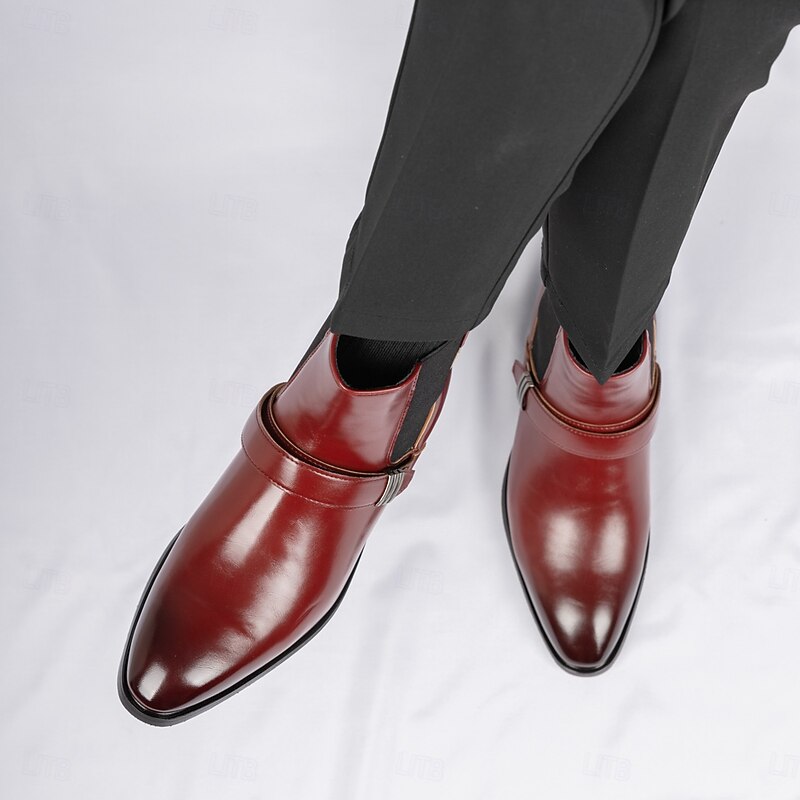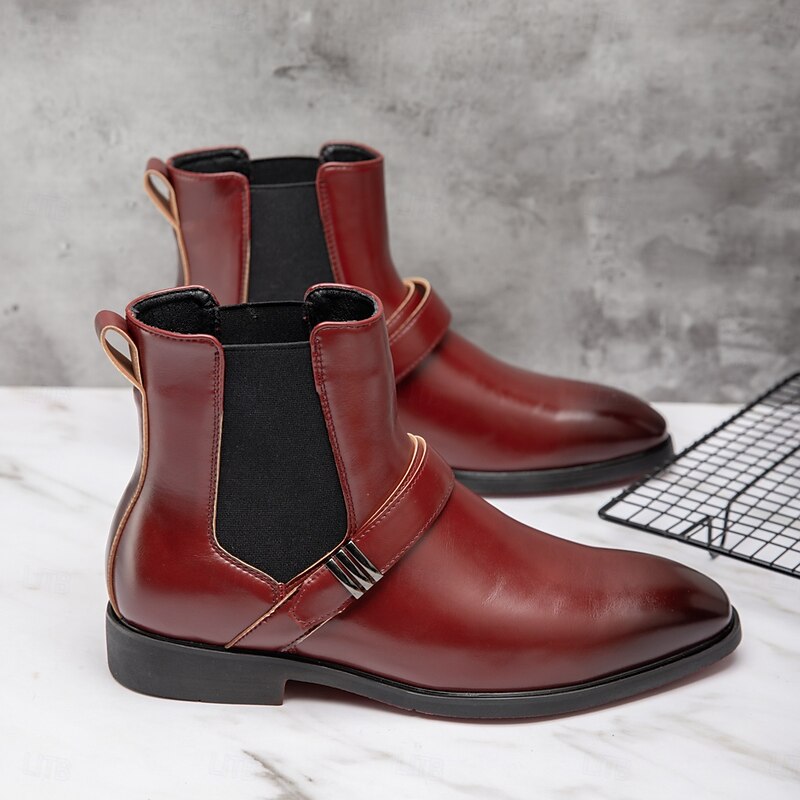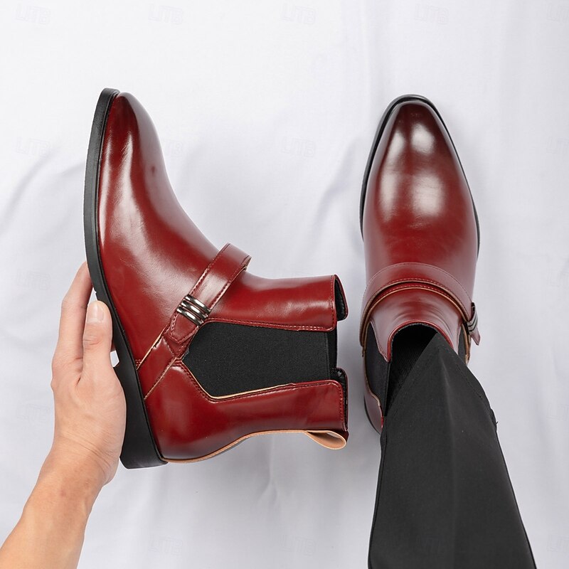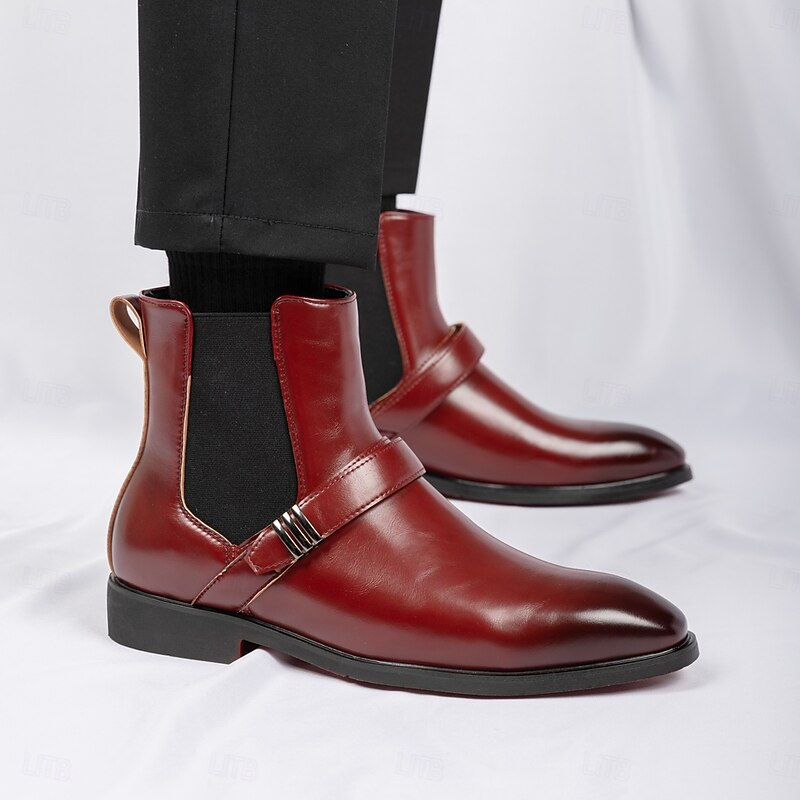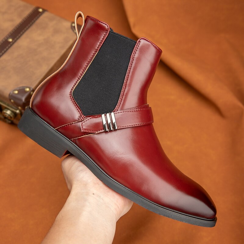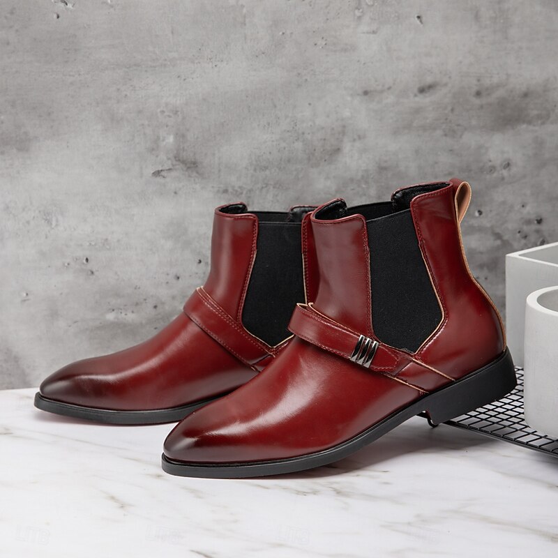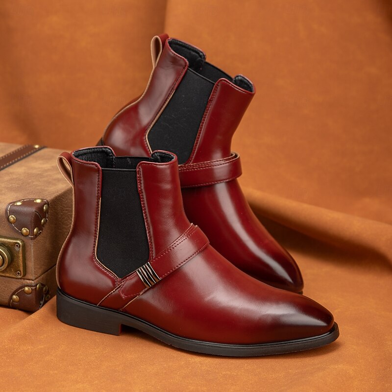 Men's Red Chelsea Boots – Classic Slip-On Dress Boots with Polished Finish for Business, Formal Events and Party Wear 38