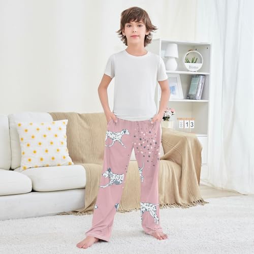 HOT ! Dalmatian Dog Boys Pants Boys Athletic Pants Long Pant for Boy with Pockets Wide-Leg Size 6-14Y