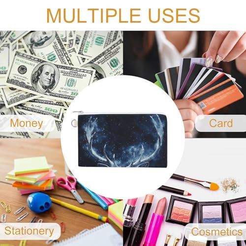 Galactic Deer Moose Fashion Coin Purse Change Makeup Bag Canvas Pencil Pouch Travel 7
