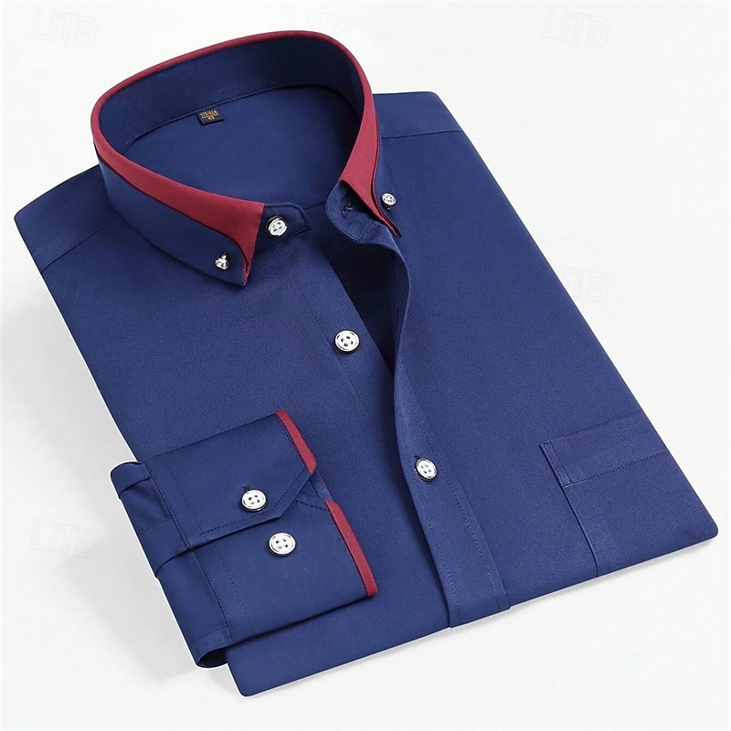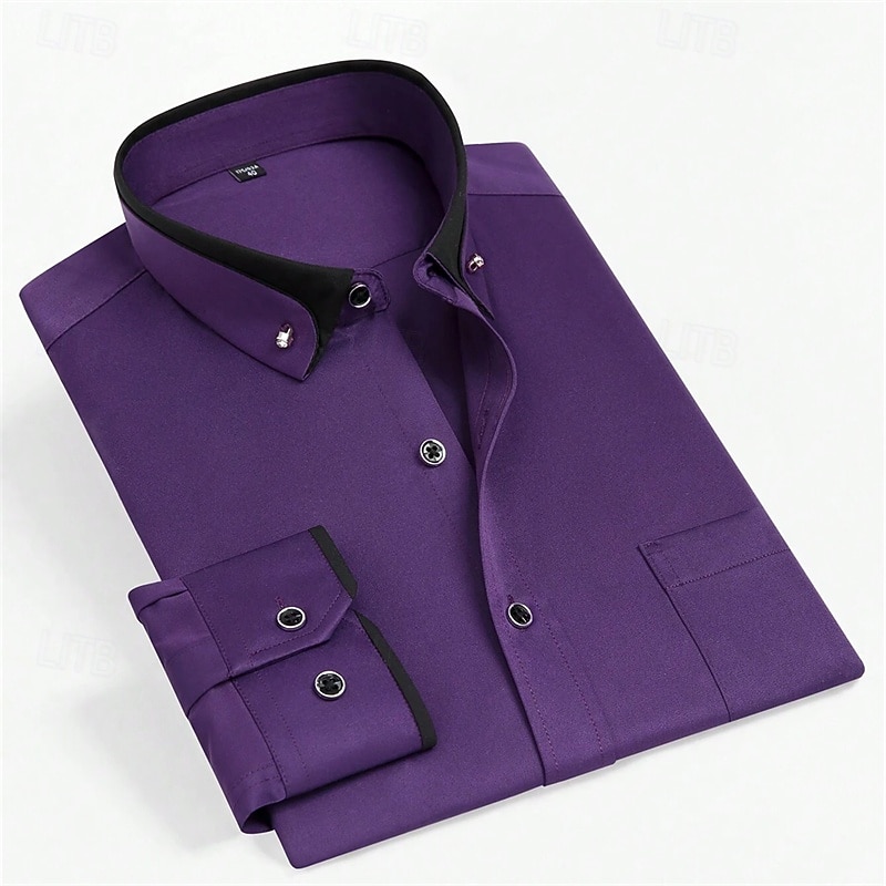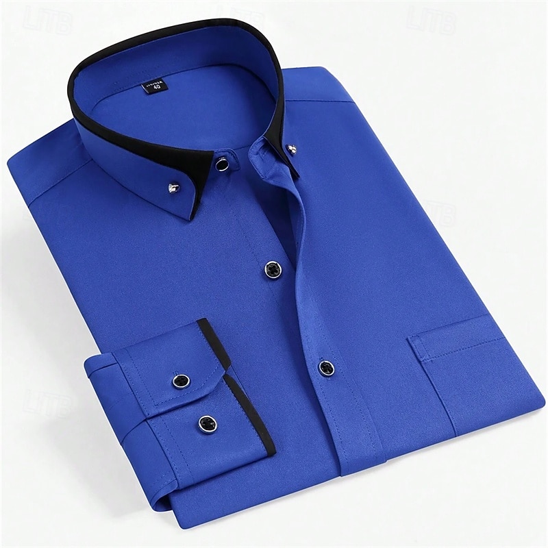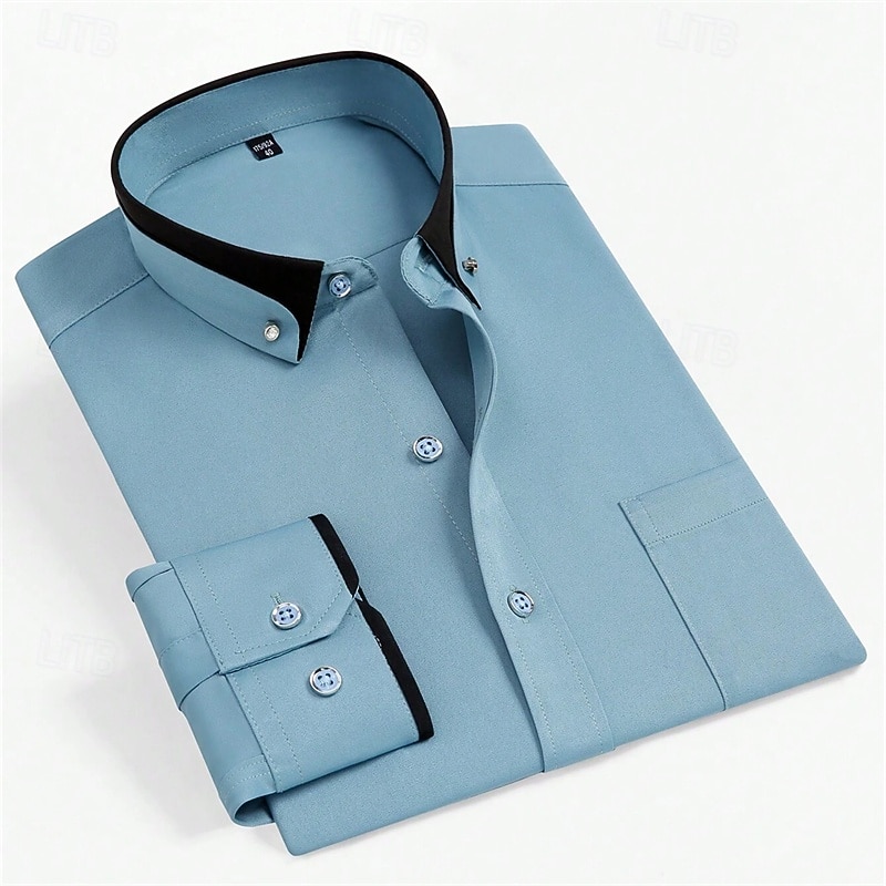 More information about Men's Dress Shirt Button Down Shirt Solid / Plain Color Wedding Light Blue White Light Green Pink Long Sleeve Square All Seasons Clothing Apparel Color Block