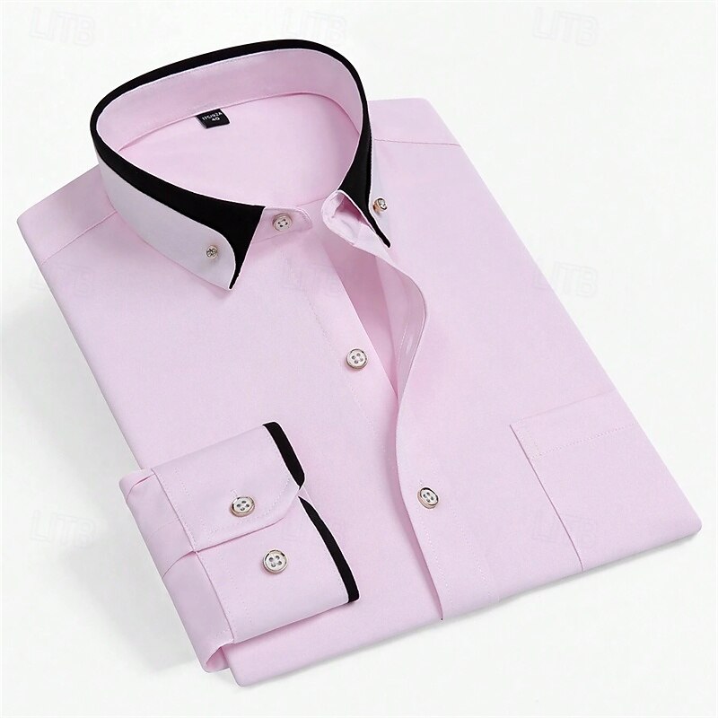 Men's Dress Shirt Button Down Shirt Solid / Plain Color Wedding Light Blue White Light Green Pink Long Sleeve Square All Seasons Clothing Apparel Color Block 17