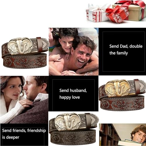 trending ! Belt Men Ratchet, Western Cowboy Leather Belts for Men with Elephant Head Alloy Buckle Embossed Belt