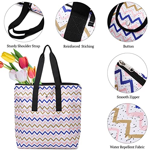 • Waterproof Fabric Tote Bag: The tote bag is made of durable waterproof polyester fabric and can be washed. The fabric is soft & smooth, wrinkle resistant & easy to clean. The surface of tote bag is waterproof and can withstand rain in a short time.