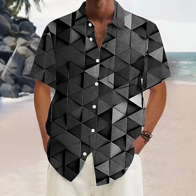 More information about Men's Geometric Optical Illusion Grid / Plaid Shirt Summer Shirt Button Up Shirt Short Sleeve Fashion Casual Vacation Dailywear Holiday Summer Spring Turndown 3D Print Collared Shirts Front One Pocket