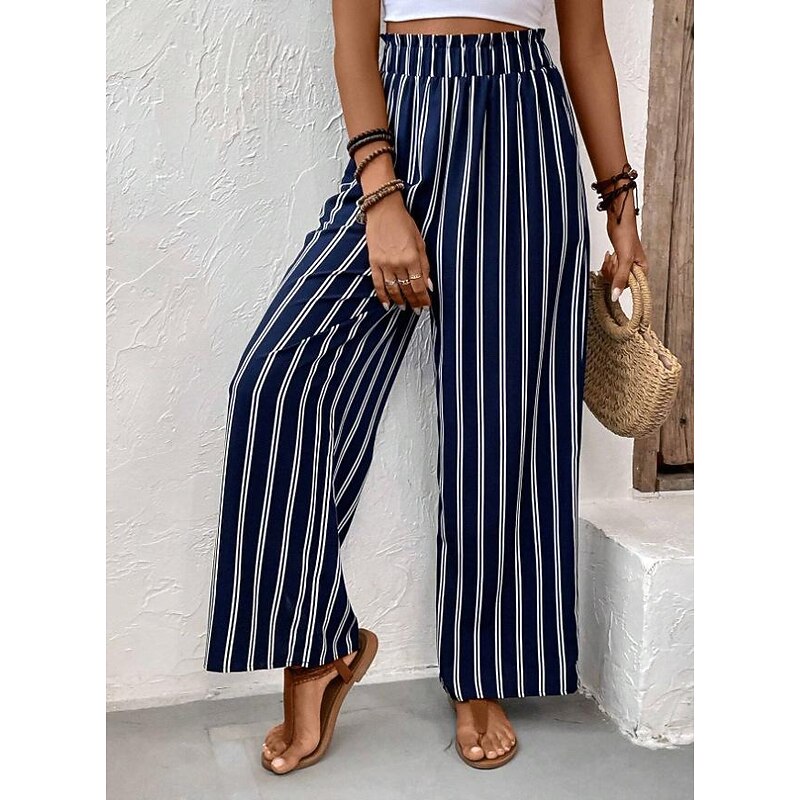 More information about Women's Wide Leg Pants Trousers Casual Daily Long Striped Wide Leg Printing Breathability Comfortable Micro-elastic Office / Career Navy Blue Spring & Summer Regular Fit