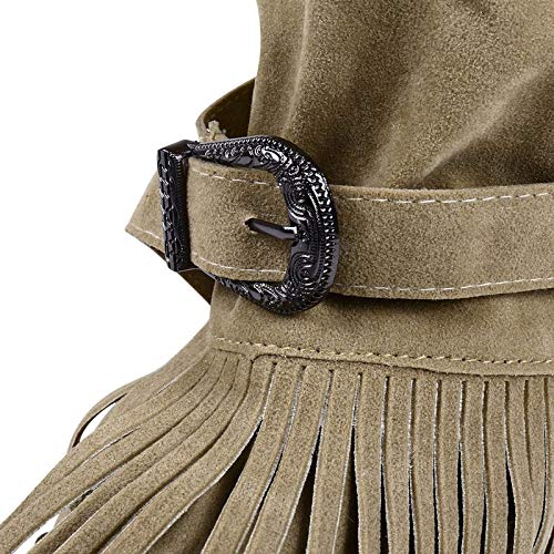 Vintage Boho Cowboy Boots for Women Western Ankle Booties with Chunky Block Heel Western Cowgirl Fringe Tassel & Buckle Strap Lace-Up Suede Moccasin Style Warm Winter Riding Boots 5
