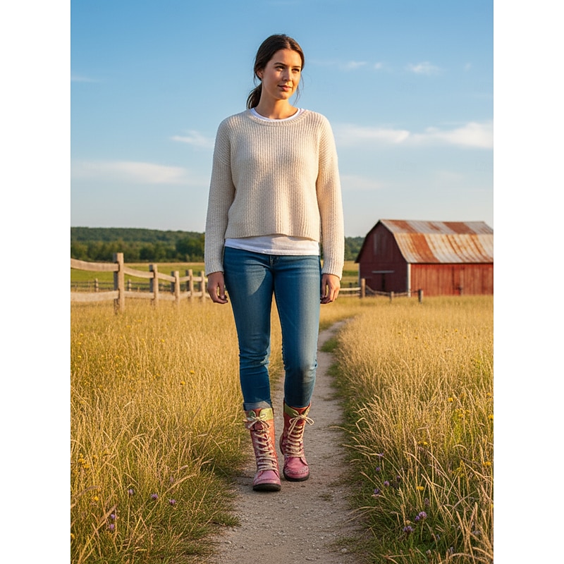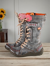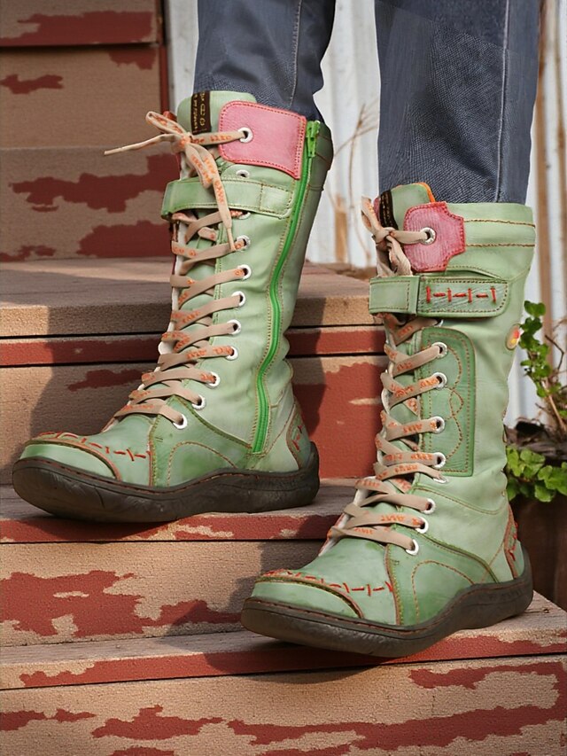 Women's Genuine Leather Lace-Up Mid-Calf Boots with Side Zipper and Colorful Stitching, Vintage Casual Fashion Boots for Winter Outfits & Outdoor Wear 17
