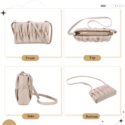 • PURSES DESIGN: This ruched purse has a large pocket inside, a small pocket that can hold a 6.7inch phone, and a zipper pocket for valuables. It also comes with 3 adjustable shoulder strap, which can be used as a crossbody bag, shoulder bag, handbag, messenger bag, tote bag