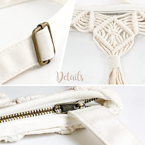 • Fashion Macrame Design: Boho Macrame combined with canvas style shoulder strap. The chic and cute design is both beautiful and practical. Further, the top zipper closure makes your goods safer.
