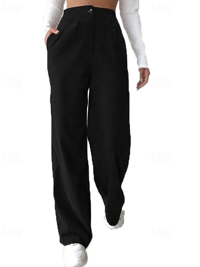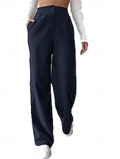 More information about Women's Wide Leg Slacks Streetwear Casual Full Length Natural Plain Pocket Elastic Waist Comfortable Street Holiday Weekend Dark-Gray Jacinth Black Brown Fall Regular Fit