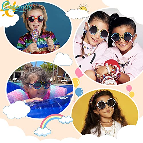 Creamily Baby Round Rhinestone Sunglasses Diamond Bling Bling Toddler Sunglasses Aviator Glasses for Girls Kids 5