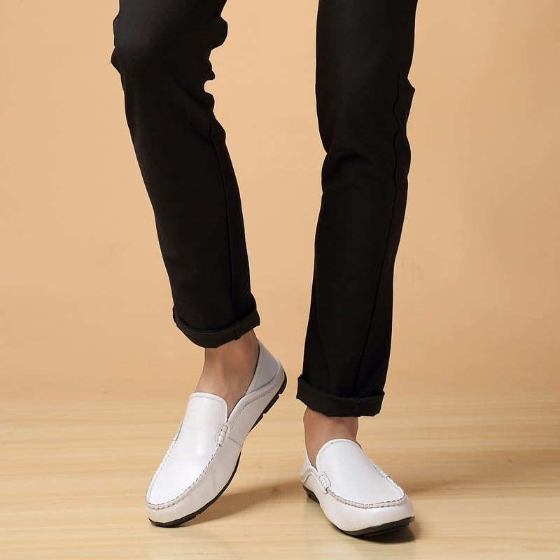 More information about Men's Loafers Shoes Solid Color Round Toe Leather Loafers Slip Resistant Lightweight Flexible Wedding Casual Slip-on