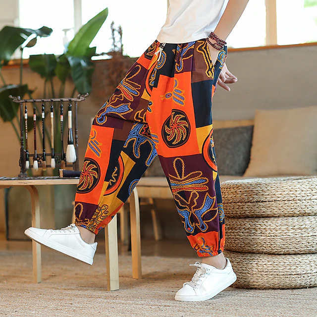 More information about Men's Harem Loose Trousers Summer Pants Baggy Pants Drawstring Classic Baggy Graphic Animal Graphic Prints Outdoor Ankle-Length Home Daily Stylish Classic Style Loose Fit Black Yellow Micro-elastic