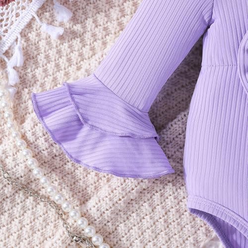 Baby Girls Outfits Sets Casual Playwear Pure Color Round Neck Top with Bow Tie Sleeves and Flared Pants Comfy 5