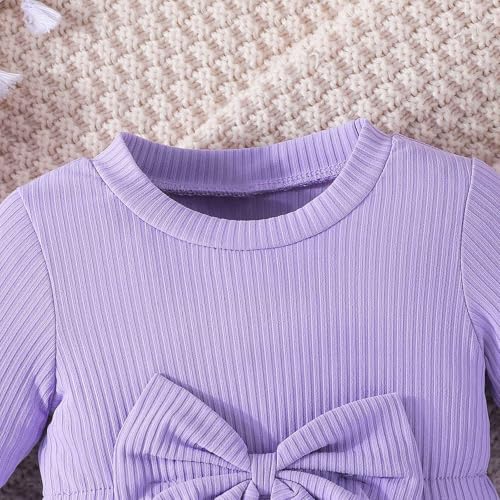 Baby Girls Outfits Sets Casual Playwear Pure Color Round Neck Top with Bow Tie Sleeves and Flared Pants Comfy 6