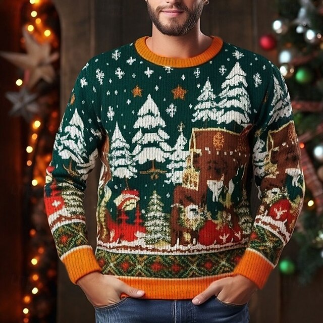 $38.99 - Ugly Christmas Sweater Men's Sweaters Crewnecks Knitting Print New Years Eve Sweater Outdoor Vacation Long Sleeve Blue Dark Green Green Fall Winter S M Ls 2025. Shop for cheap Ugly Sweaters online? Buy at lightinthebox.com on sale today!