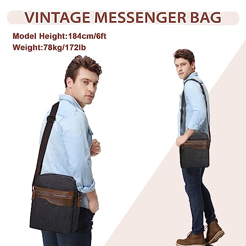 HOT ! VASCHY Small Messenger Bag, Vintage Leather Canvas Crossbody Shoulder Side Bag for Men Women for Work/Travel
